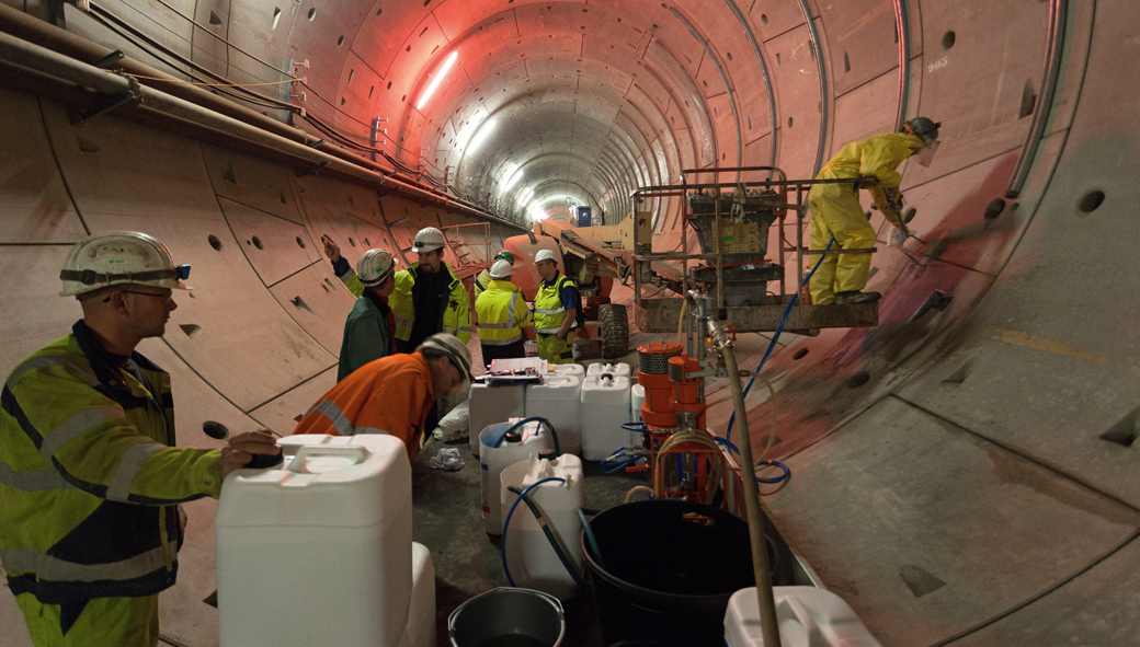 A pesar de la mejor planificación posible, las tecnologías de alto rendimiento y la ejecución óptima de la construcción, pueden surgir problemas durante la excavación, dependiendo de la roca y el suelo encontrados. En tales casos, es necesario aplicar las medidas correspondientes para mantener el ritmo de avance requerido y, al mismo tiempo, mantener la máxima seguridad. MC-Montan Injekt y MC-Injekt ofrecen sistemas de inyección especiales de alto rendimiento, rápidos, fiables y sostenibles para la estabilización y el sellado de rocas, la impermeabilización de superficies y juntas y el relleno de grietas y cavidades. Los daños y las fugas en el revestimiento del túnel o en el armazón pueden ser reparados inmediatamente por los sistemas de asistencia después de las operaciones de corte o excavación. Otras medidas de reparación de hormigón y de protección de superficies que se aplican inmediatamente después de la impulsión minimizan el riesgo de que las estructuras fallen o se degraden.  Esto no sólo reduce los costes de reparación y mantenimiento en el futuro, sino que también tiene un efecto positivo en la durabilidad de todo el sistema de túneles