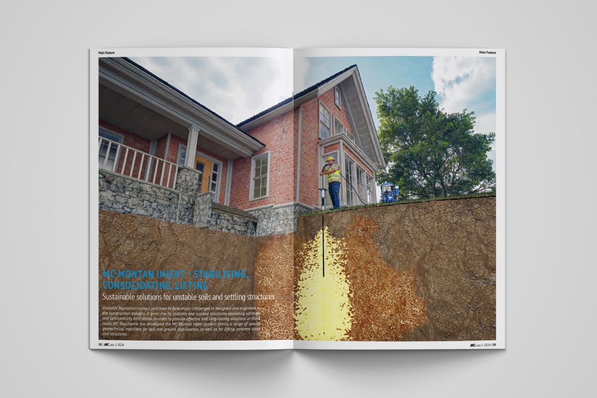 El tema principal del primer número de 2024 de nuestra revista para clientes es nuestra gama de inyecciones geotécnicas especiales para la estabilización de suelos y terrenos, así como para la elevación de losas y estructuras de hormigón. Además, nuestro MC aktiv ofrece una vez más una interesante e inspiradora mezcla de innovaciones, proyectos y noticias internas del mundo de MC-Bauchemie.