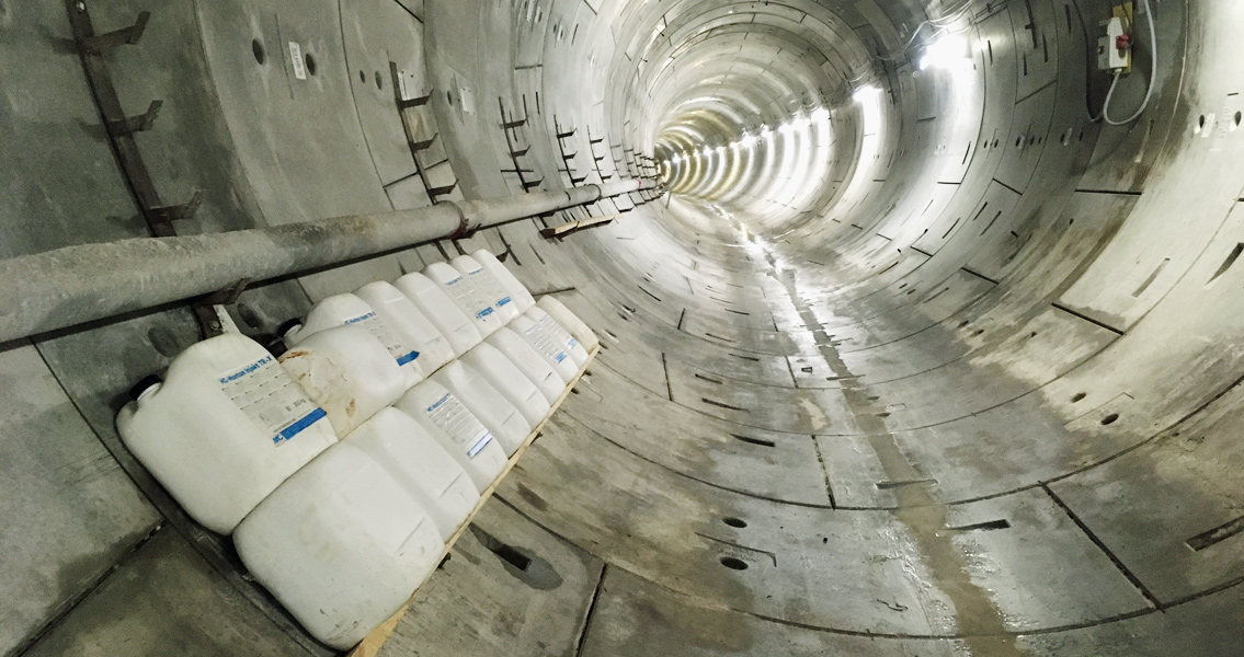 Hubo que colocar un total de 5.700 dovelas. MC-Montan Injekt TR-X proporcionó el sellado elástico de los perfiles de sellado en las juntas entre los segmentos. El hidrogel de baja viscosidad a base de acrilato para inyección en roca y estructuras sólidas puede utilizarse incluso con seguridad en entornos alcalinos y en contacto con morteros de huecos anulares gracias a su excepcional resistencia química. Su muy buena inyectabilidad y su tiempo de reacción controlable permiten trayectorias de inyección bien controladas. Además, la prueba positiva según la directriz de la UBA confirma incluso la posibilidad de uso en contacto con agua potable.